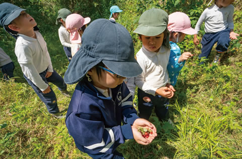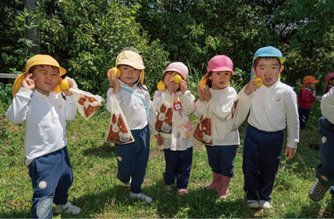 楽しくボールに親しめるプログラムを考え、高知ユナイテッド SC のコーチが指導。春野の芝生で姉妹園と交流試合もしています。